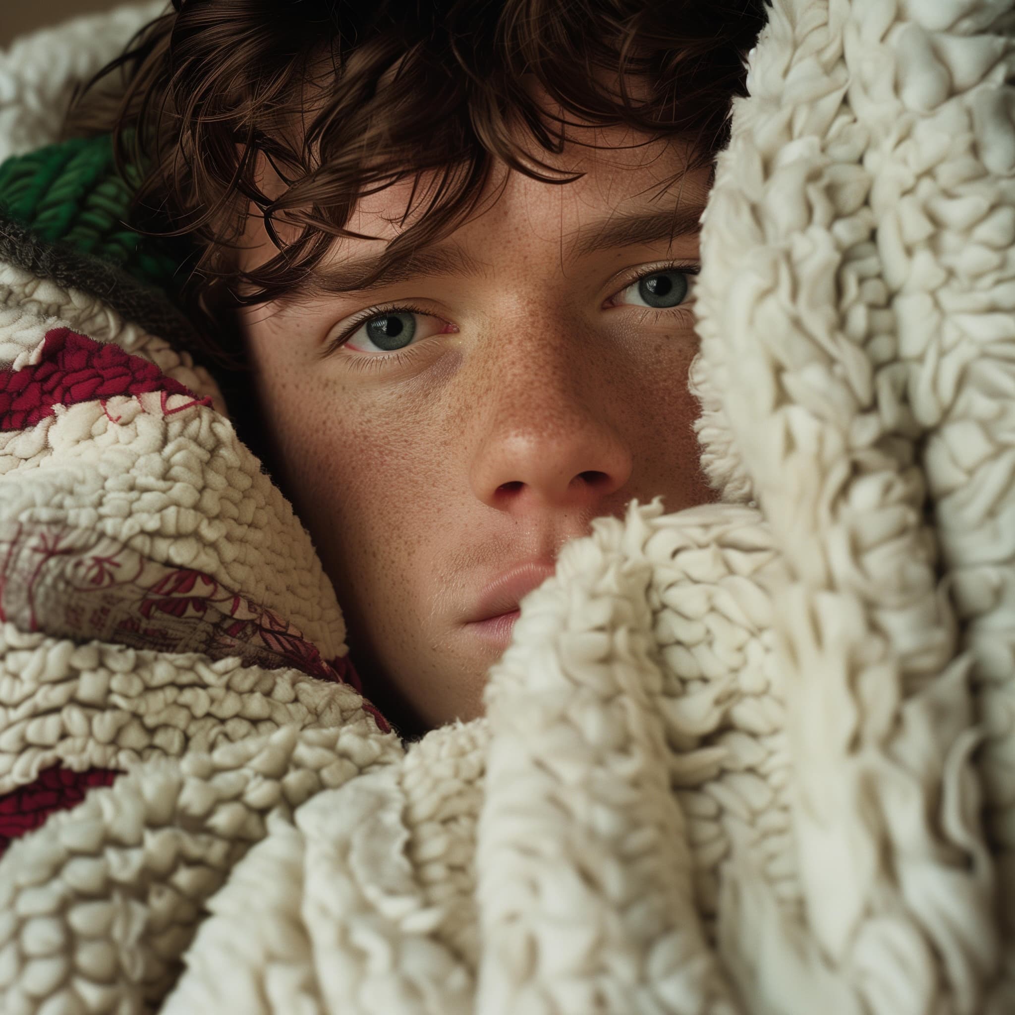 Threads of color entwined, whispers of warmth in every stitch. A tapestry of dreams unfolds.
